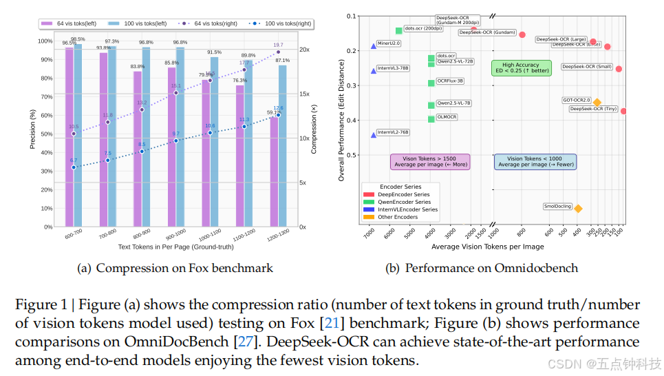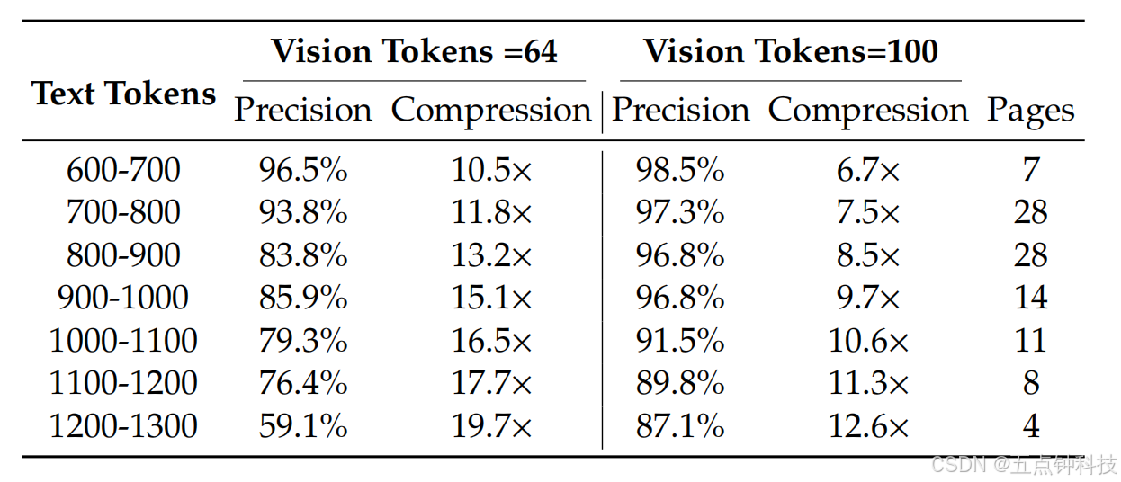 report documents, DeepSeek-OCR can achieve good performance with only 100 vision tokens.