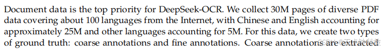 for DeepSeek-OCR. In summary, when training DeepSeek-OCR, OCR data accounts for 70%,