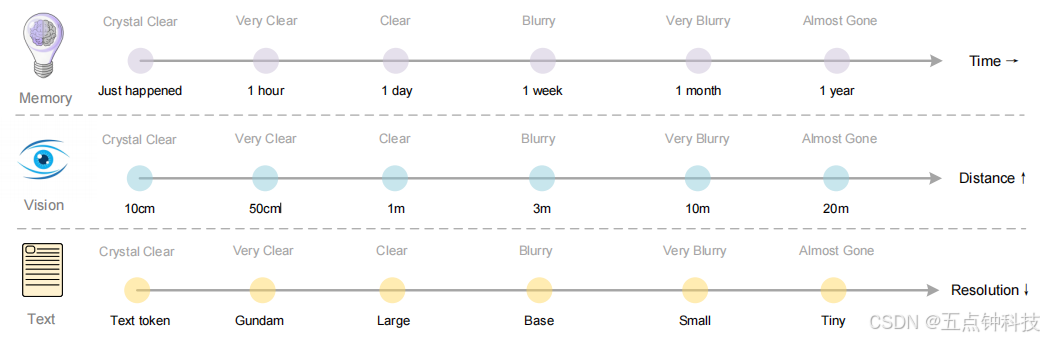 遗忘机制是人类记忆最基本的特征之一。上下文光学压缩方法可以模拟这种机制:将前几轮的历史文本渲染到图像上进行初步压缩,然后逐步调整旧图像的尺寸以实现多级压缩,在此过程中,标记数量逐渐减少,文本变得越来越模糊,从而实现文本遗忘。