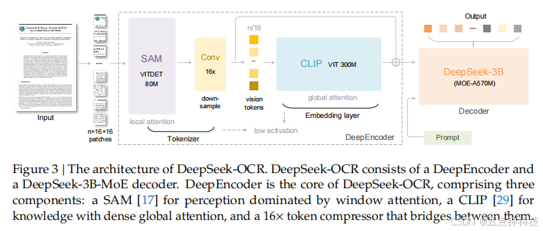 and the decoder taking two parts. For DeepEncoder, we treat SAM and the compressor as the