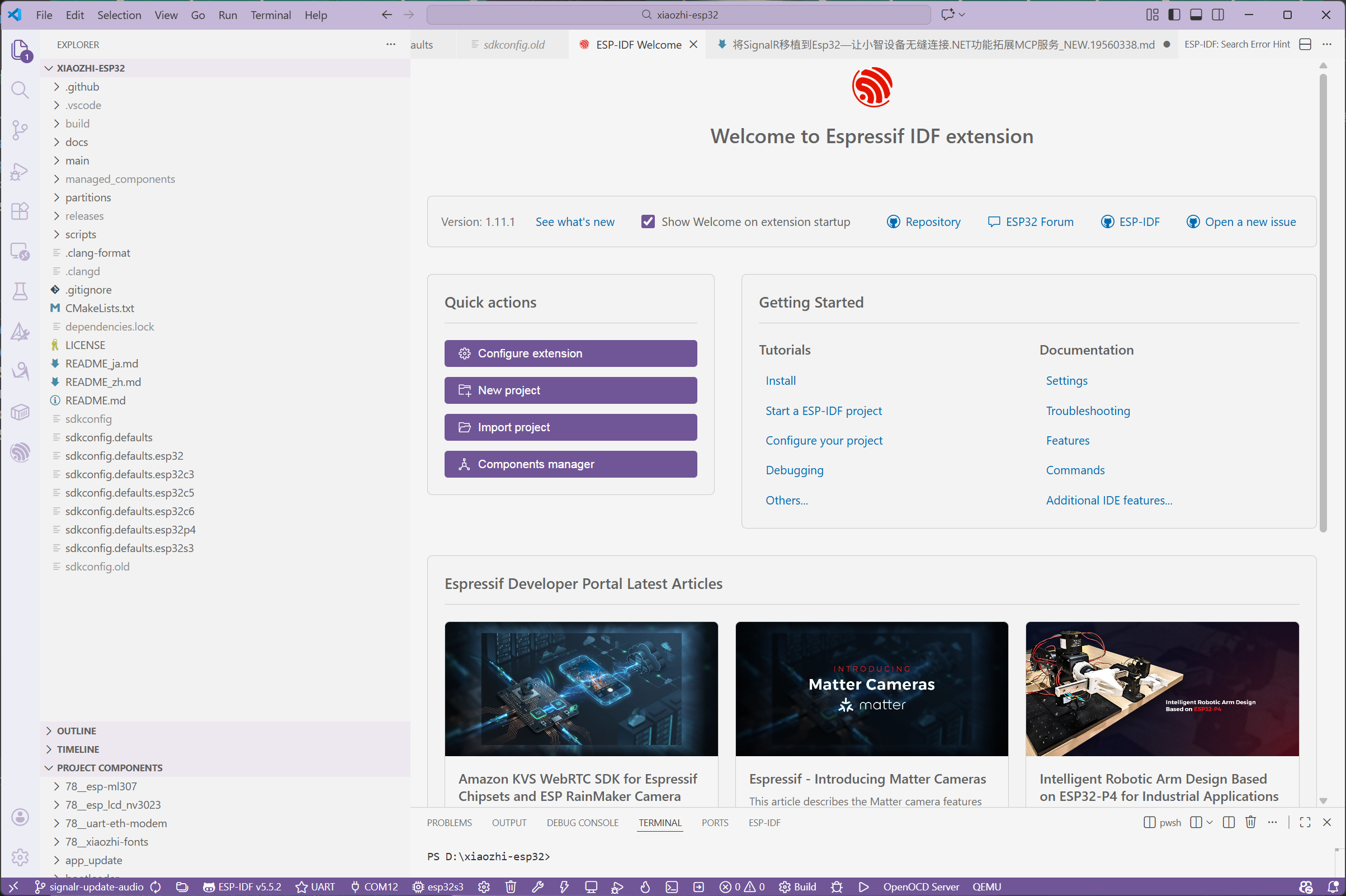 最简单的方式是使用VS Code的ESP-IDF插件: