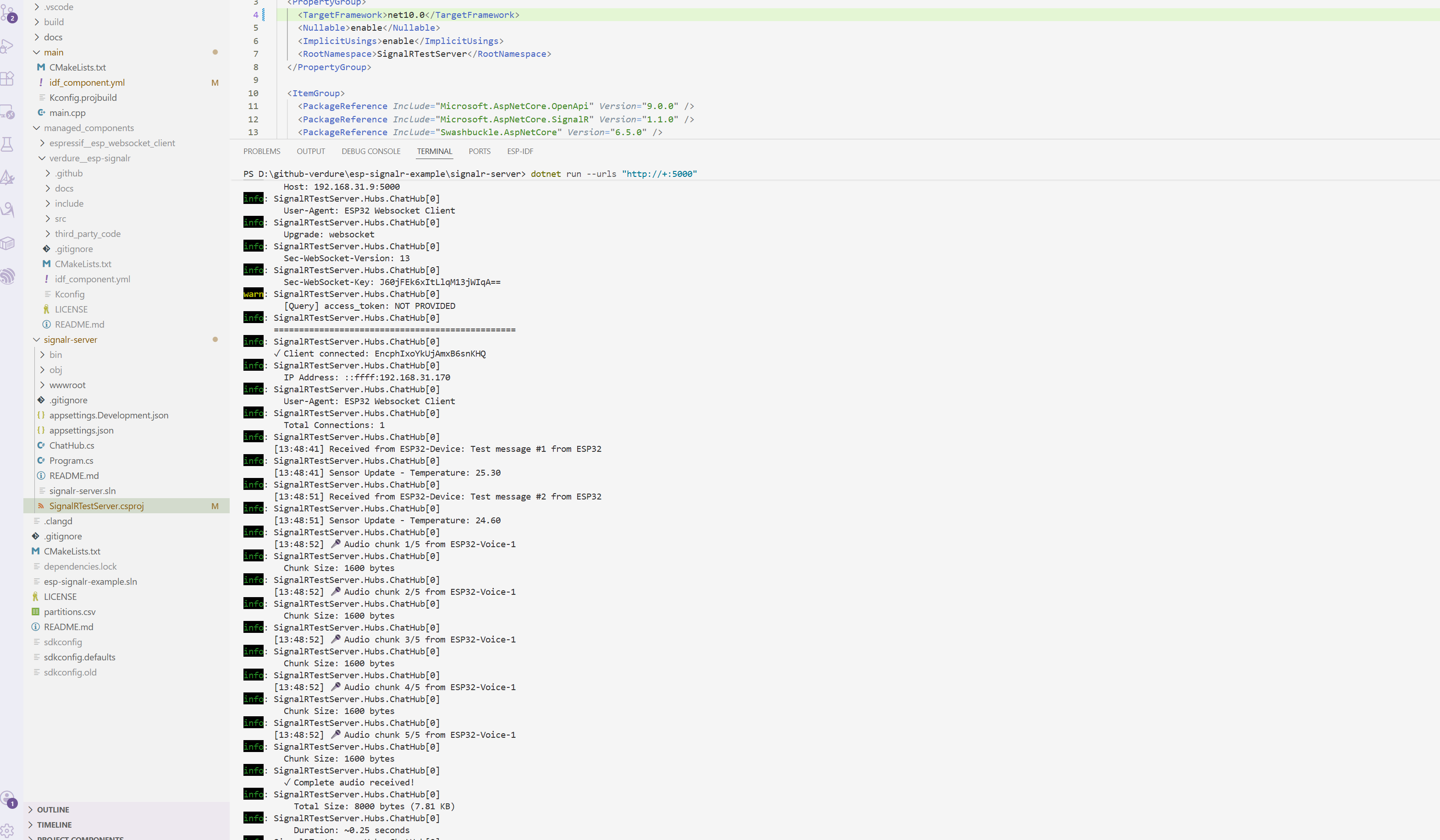 ESP32 SignalR完整示例工程 (包含音频分块、设备控制API等):