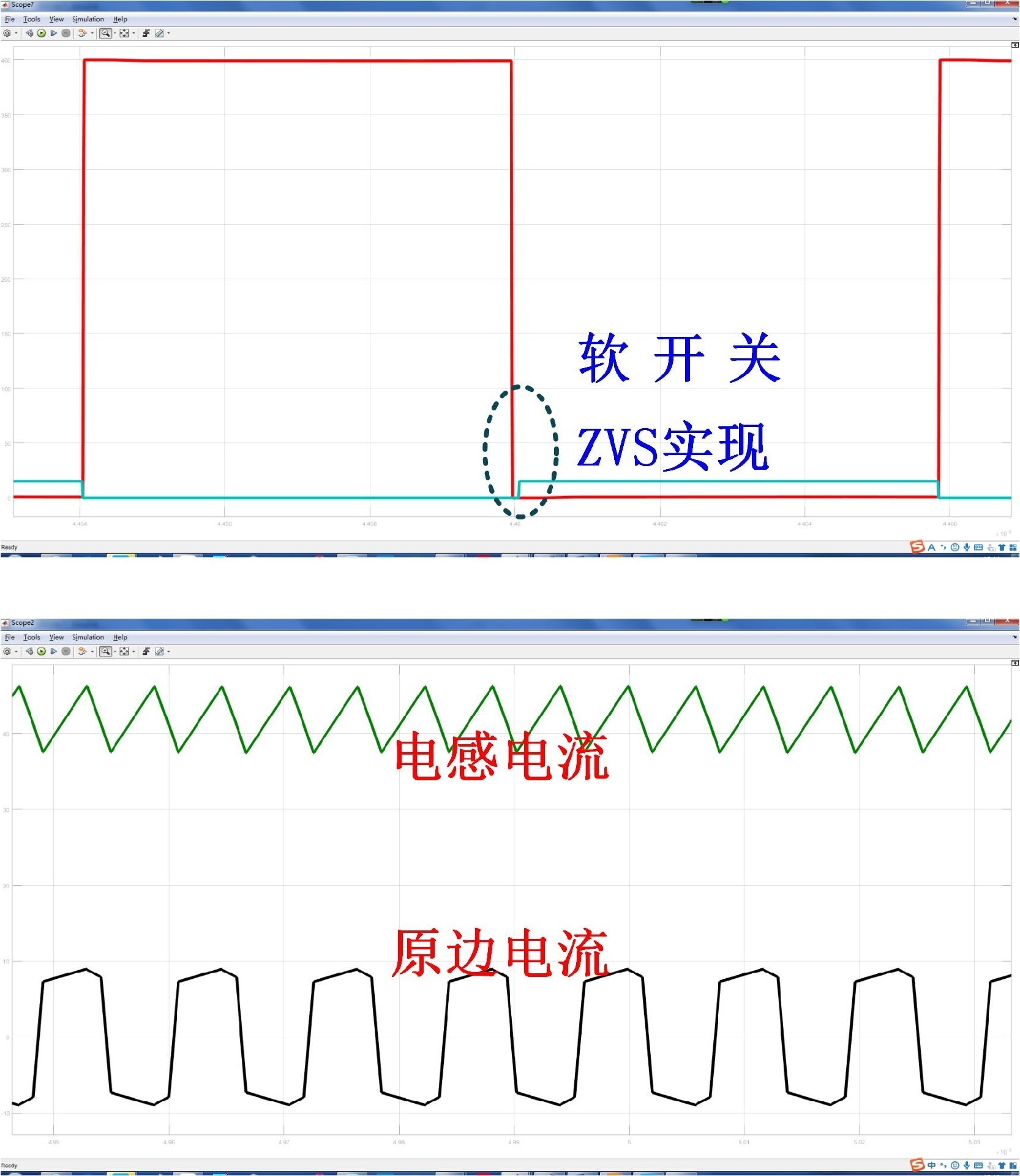 假设允许10%纹波,得到约1.2mH。仿真模型里的变压器参数设置有个坑------漏感不能设太小,否则ZVS实现不了。实测设置0.5μH时软开关效果最佳,这个值跟PCB布线的实际情况也吻合。