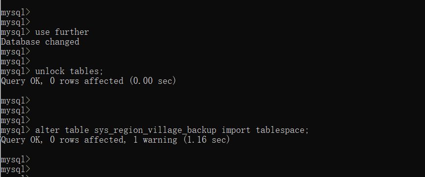 Query OK, 0 rows affected, 1 warning (1.16 sec)