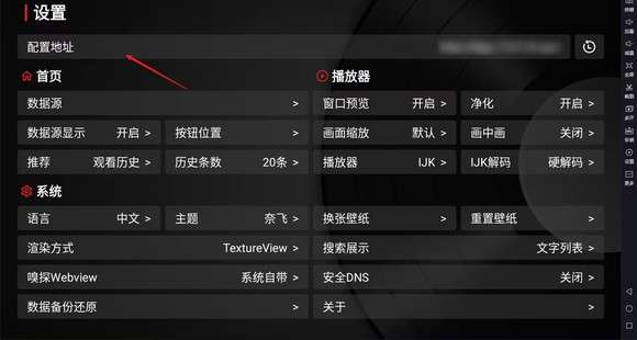 1、打开设置,点击上方的"配置地址"。