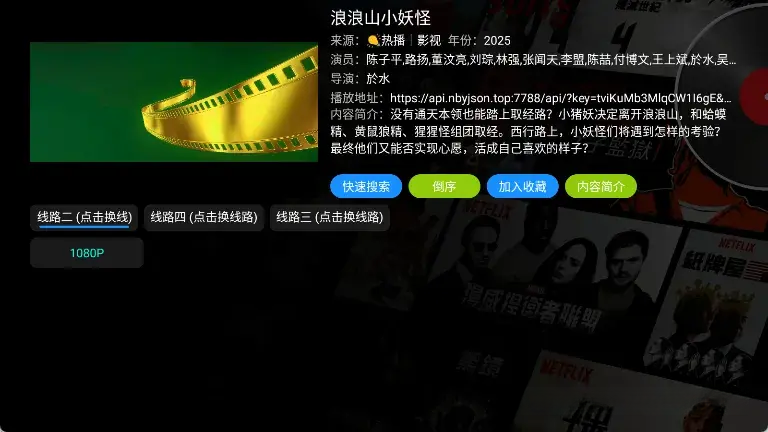 2、上一步操作完成后,重启软件,最后就可以搜索想看的了,比如"浪浪山小妖怪",就会出现多个源,点击一个就可以播放了。