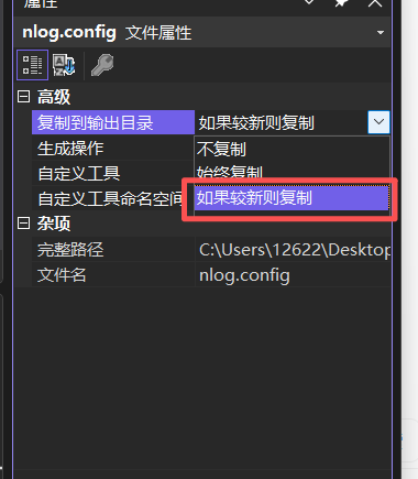 创建完后需要设置为 "如果较新则复制"