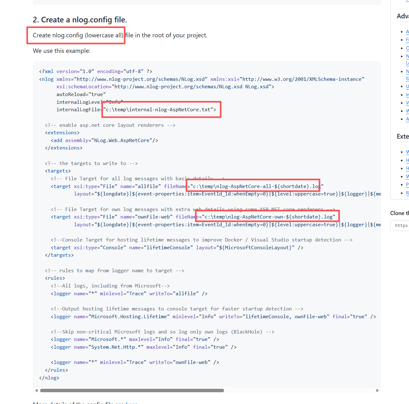 拉到底下选择对应的,他会教你怎么建立 nlog.config。