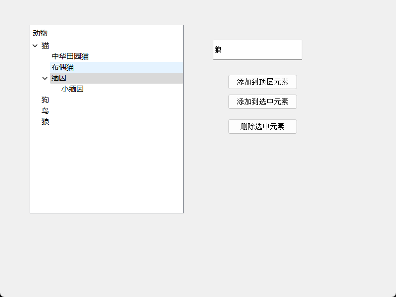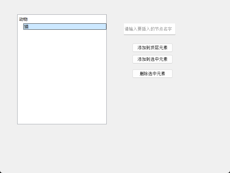 执行上述代码后,树形控件中出现了一个名为"猫"的根节点。