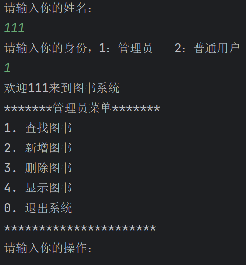 System.out.println("请输入你的身份,1:管理员 2:普通用户");