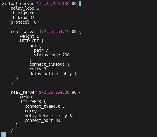 virtual_server 172.25.254.100 80 {