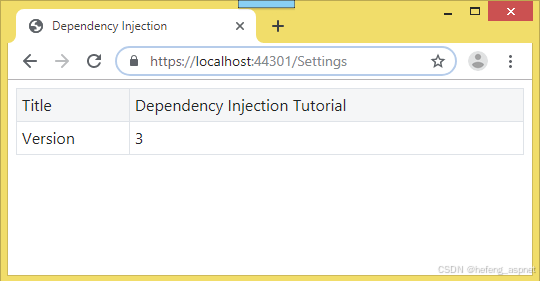 运行您的应用程序并访问 URL -- https://localhost:44301/Settings/Show。您将在视图中看到显示的值(见下图)。