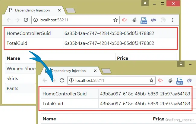 假设一段时间后,需要将存储库更改为名为NewRepository.cs的另一个类。因此,我们需要像这样更改 Controller 中的代码: