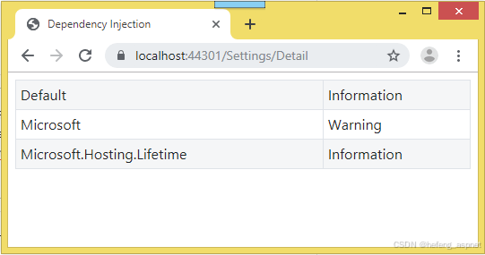 <td>@Configuration["Logging:LogLevel:Microsoft.Hosting.Lifetime"]</td>