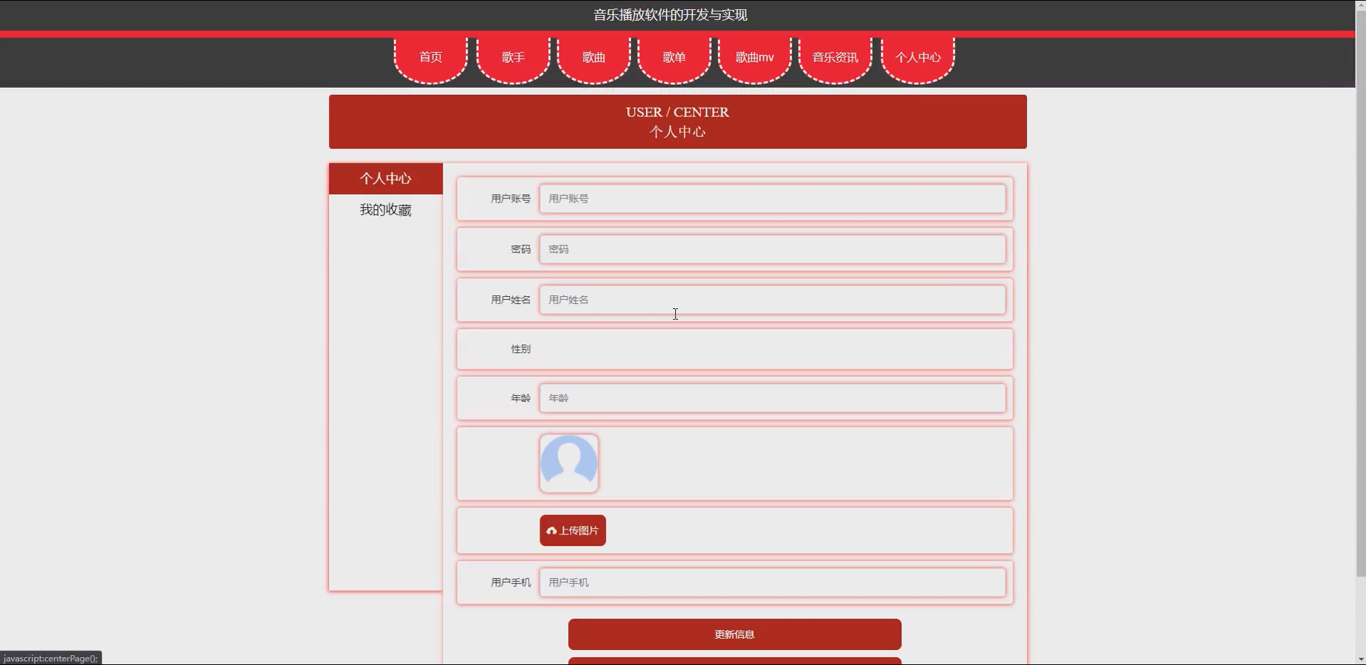 - 用户模块:实现用户注册、登录、个人信息管理功能,支持用户收藏歌曲、查看播放记录,基于 Session 实现用户身份验证与权限控制;