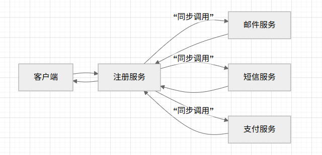 - 注册服务必须同步等待所有下游的服务全部完成之后,才能给用户反馈"注册成功"。整个过程耗时是所有服务耗时的总和,用户体验差。