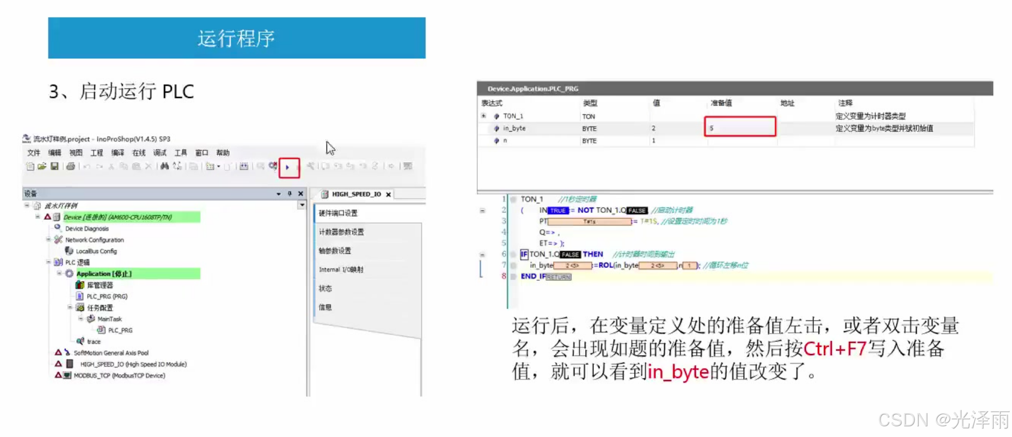 in_byte : BYTE := 16#1; //定义变量为byte类型并赋初始值 程序变量声明区