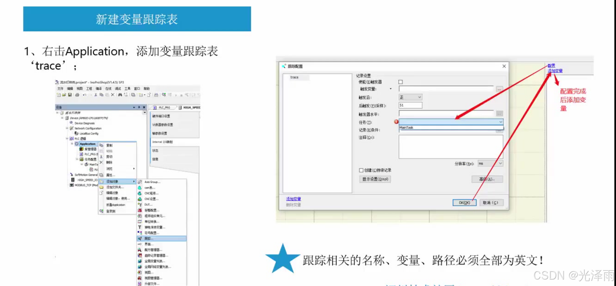 命名规则:跟踪表名称、变量和路径必须全部使用英文