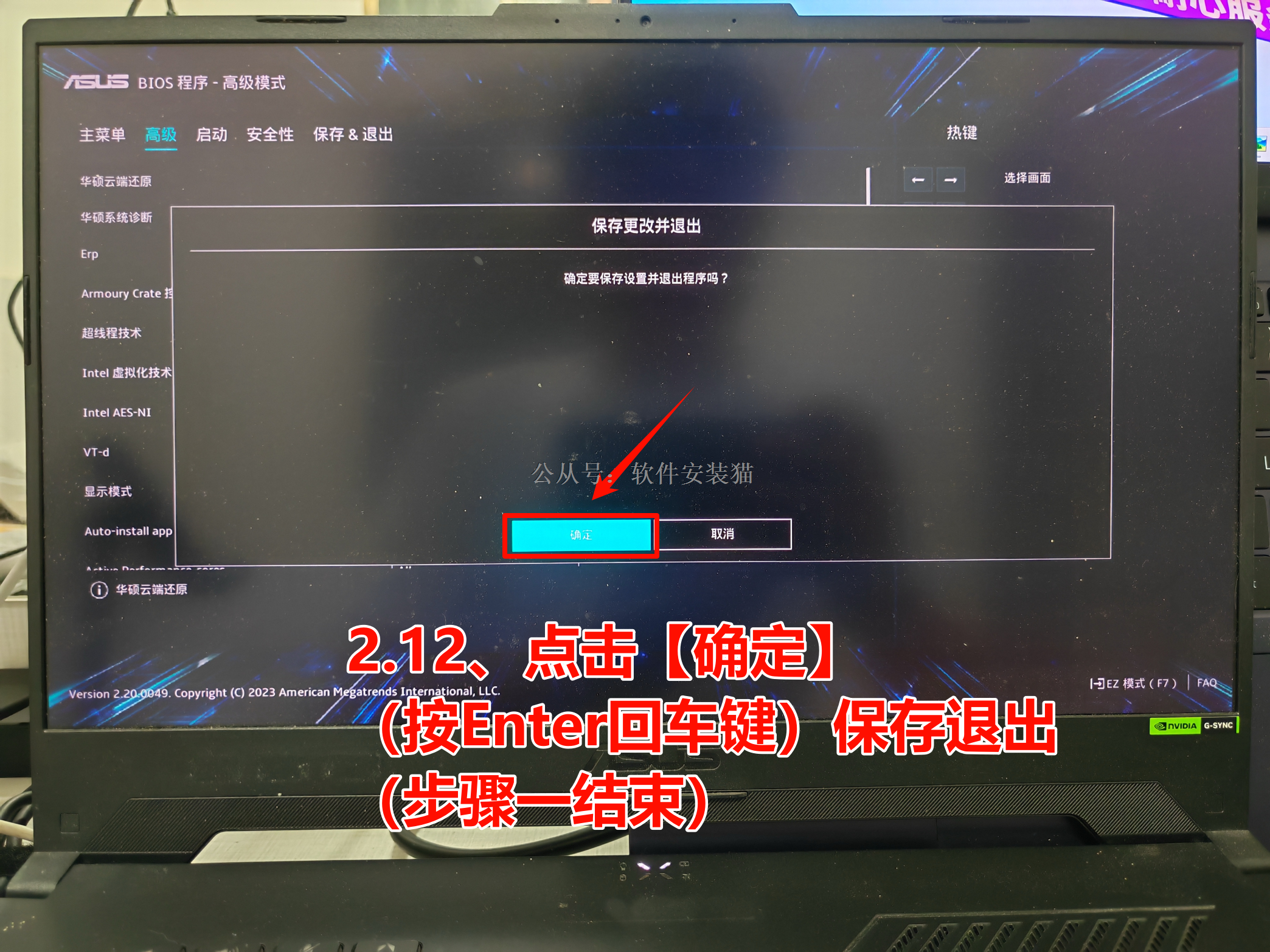 2.12、点击【确定】(按Enter回车键)保存退出(步骤一结束)