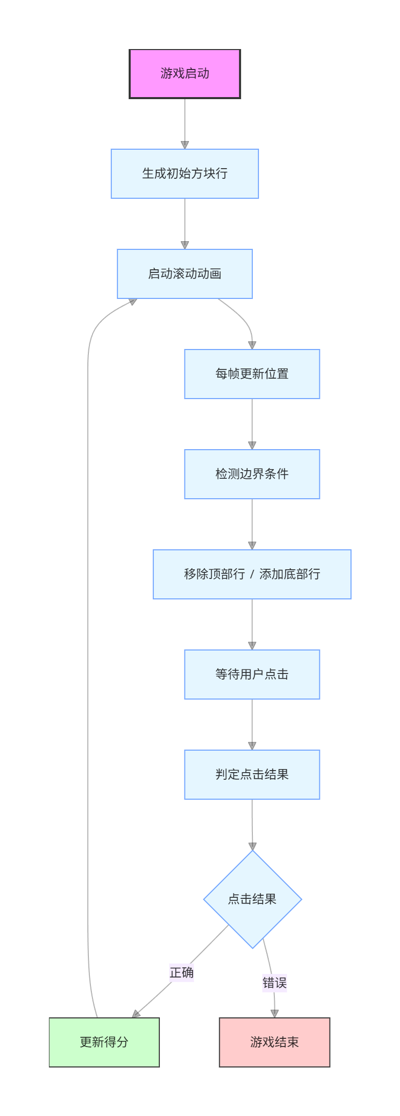 别踩白方块游戏的核心是一个持续运行的循环: