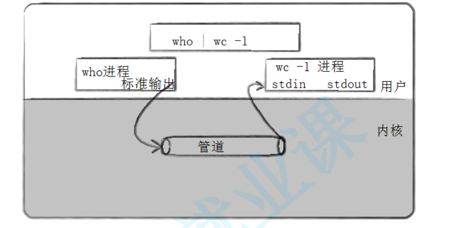 who进程:它的标准输出(stdout)被重定向到管道的写端,不再直接输出到终端。wc -l进程:它的标准输入(stdin)被重定向到管道的读端,不再从终端读取输入。