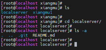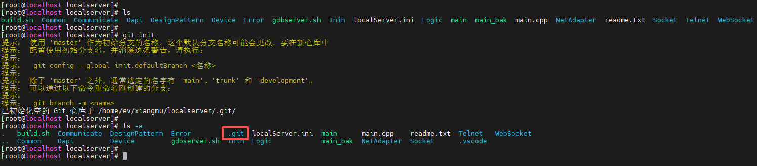 进入本地的项目目录,可以发现有一个.git目录,它包含了所有与Git仓库相关的元数据和对象数据库。这个目录是隐藏的,用ls -a命令才能看到: