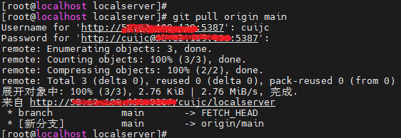 从远程仓库的main分支获取最新的更改并合并到本地当前分支上: