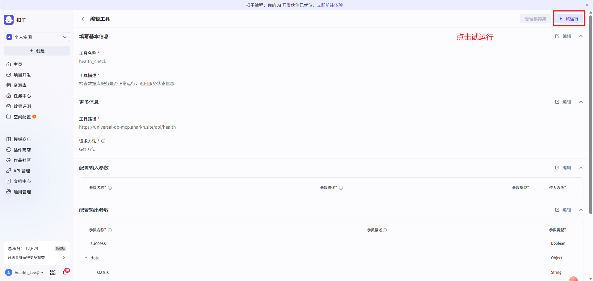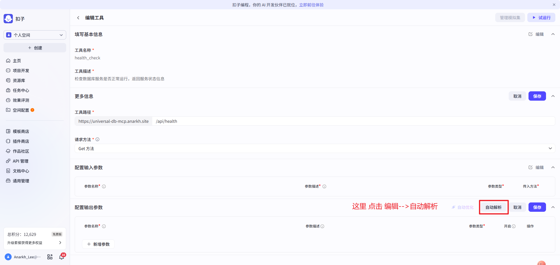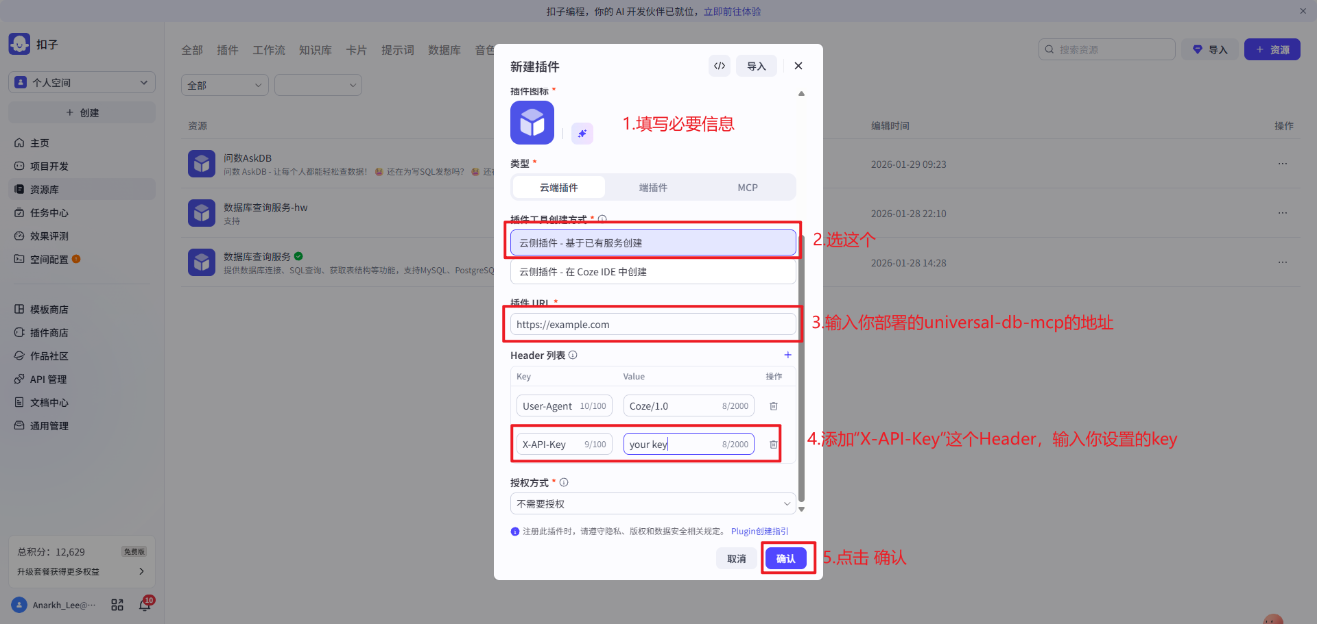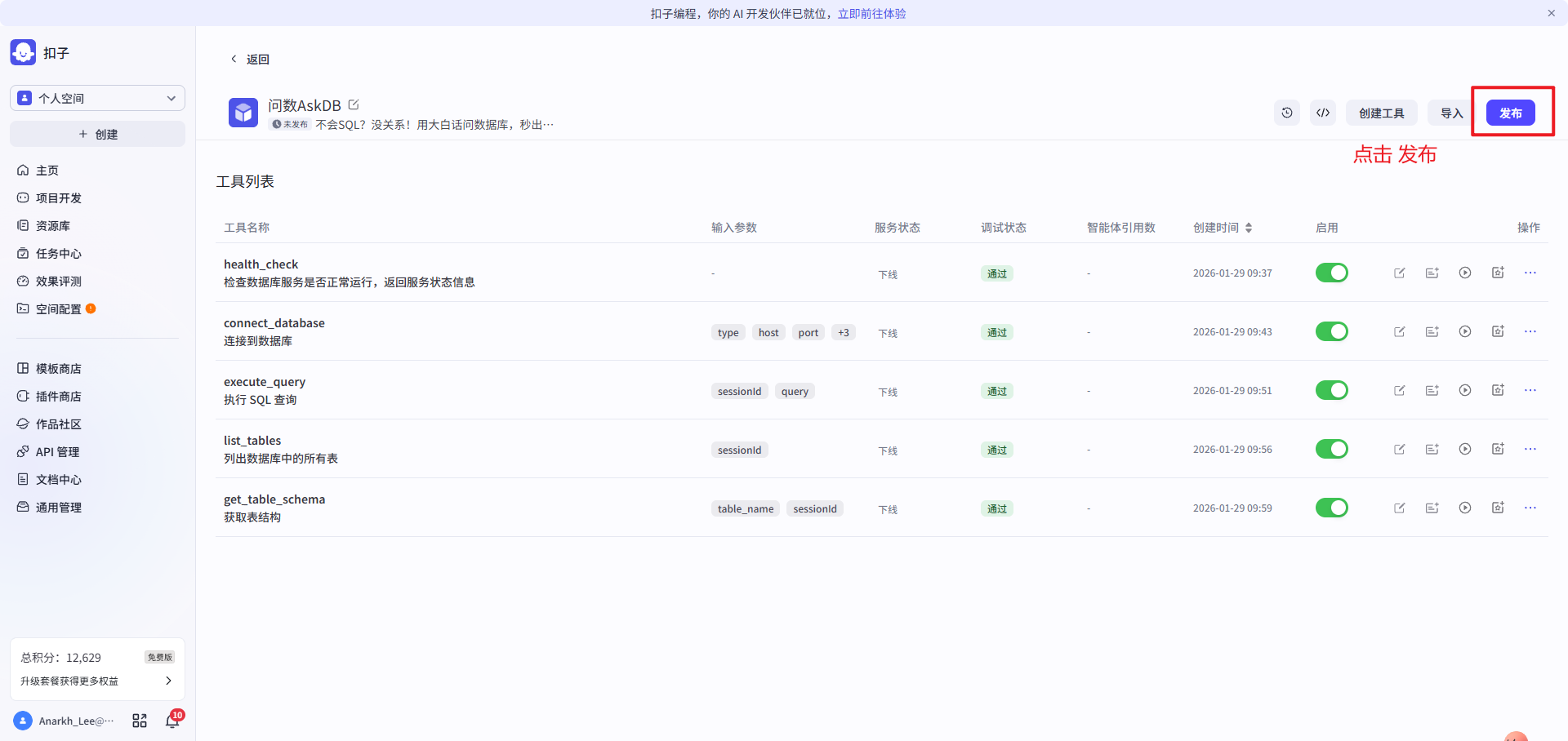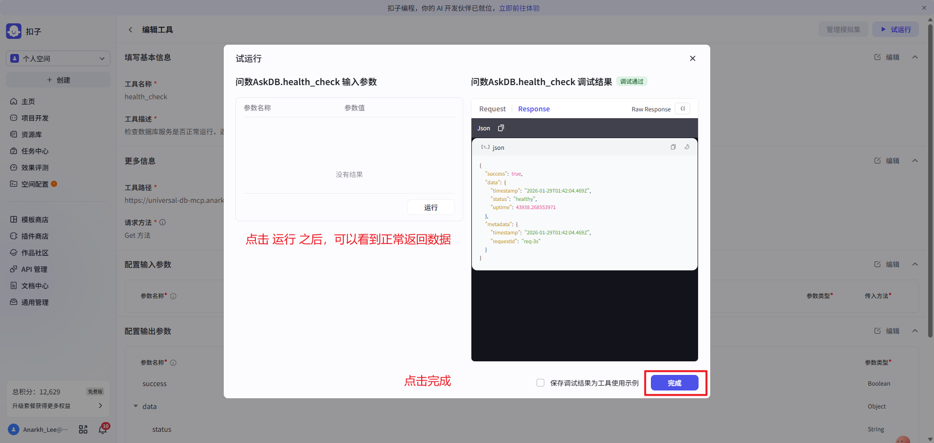 前几天开源了 universal-db-mcp数据库万能连接器 ,支持MCP模式和HTTP API模式,MCP模式直接接入Claude Desktop或者Cherry Studio这类客户端就行了,HTTP API模式一直没实际进行应用,这几天在coze中浅浅的试用了一下,效果还不错,效果大概是这个样子的: