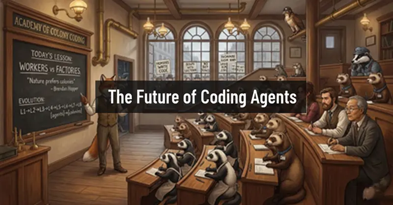 每个人似乎都认为编码代理的未来是......编码代理。我将重述我的朋友 Brendan Hopper 关于它们的说法,即当需要完成工作时,自然更喜欢殖民地。自然界构建蚂蚁殖民地,Brendan 说,而 Claude Code 是"世界上最大的该死蚂蚁"。它会一半咬你并拿走你所有的资源。每个人都专注于让它们的蚂蚁运行更长时间、表现更好、做更大的事情。让它们成为超级工作者。超级蚂蚁。这就像我在 1970 年代作为孩子观看的所有黑白 1950 年代恐怖电影一样。