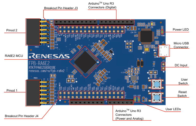 Figure 1. FPB-RA6E2 Board Layout