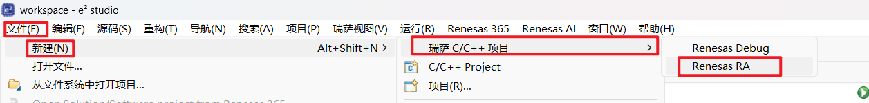 安装完毕后,打开 e2 studio,新建 RA C/C++ Project。