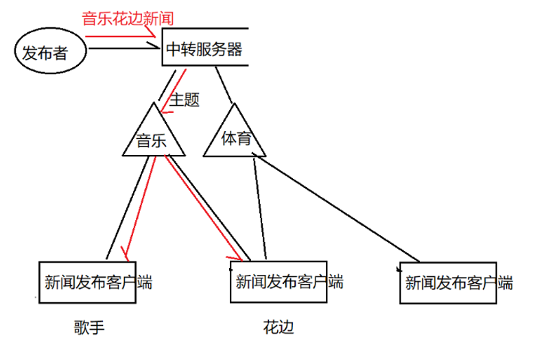 中转服务器的路由决策 :通常基于主题订阅机制。每个处理客户端会提前向服务器订阅自己关心的主题(如"歌手新闻""花边新闻"),服务器根据消息所属主题,将其投递给所有订阅该主题的客户端。