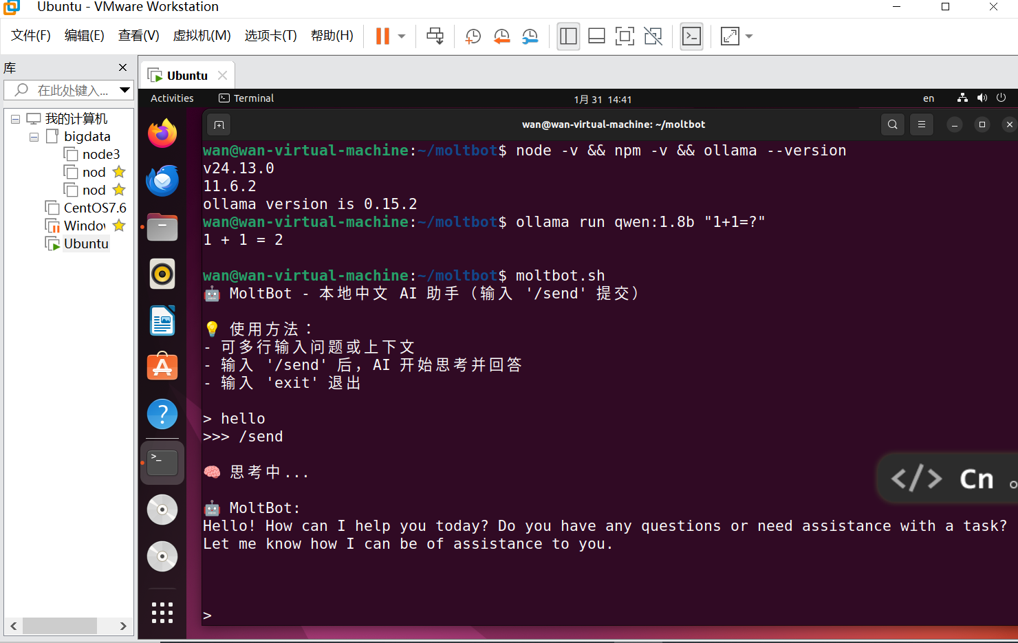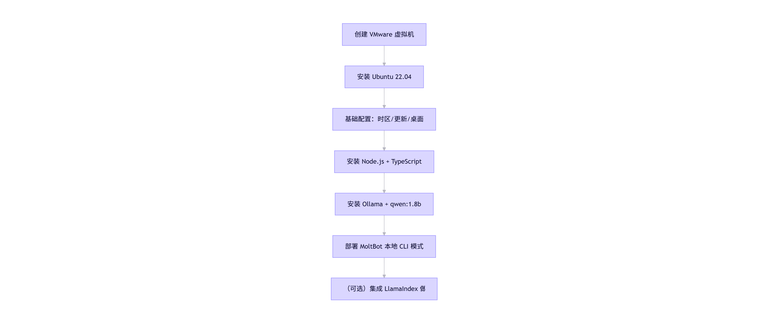 VMware Workstation 17 + Ubuntu 22.04 + MoltBot + Ollama + qwen:1.8b + LlamaIndex(可选)