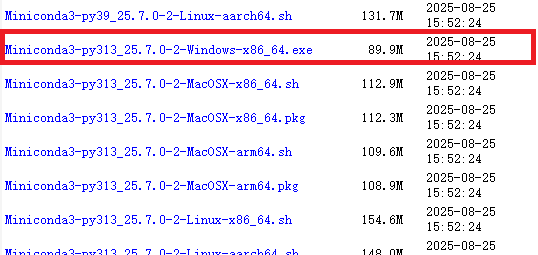 地址https://repo.anaconda.com/miniconda/,我下载的是这个版本,python3.13
