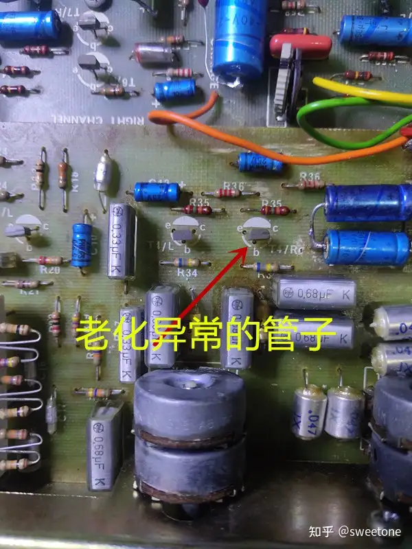 而T4R的放大倍数激增的原因:既有其本身老化的可能,也有耦合电容漏电使其老化的可能,还有线路板残留化学物质漏电使其老化的可能。