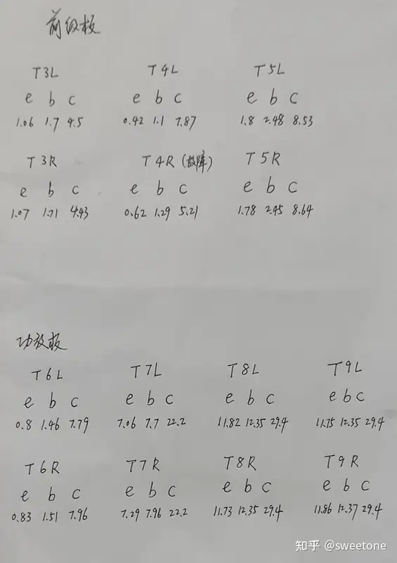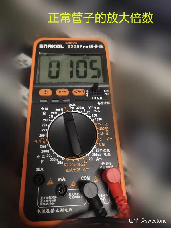 由于测得T4R的B极,C极,E极所接电阻阻值与T4L的一样,怀疑问题在三极管本身,所以拆下T4R与T4L比较一下。测出T4R的PN结导通值与T4L 的差不多。但是测出T4L的放大倍数是105倍,T4R的放大倍数是311倍。看来是T4R的放大倍数过大导致其静态电流Ic过大,使其静态工作点异常(偏离Vce=1/2Vcc)。应该将线路板T4R换为放大倍数和T4L接近的管子(ZTX384),为了保证2声道平衡, T4R和T4L都换为放大倍数为100倍的管子。