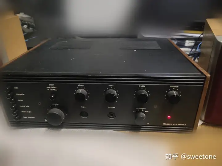 这台Rogers(乐爵士)A75 Series 2 功放,笔者曾经在三年前维修过。当时,该机的故障是一个声道有自激现象,表现为喇叭乱震。换了功放板上几个小功率三极管和几个耦合电容器后得以修复。