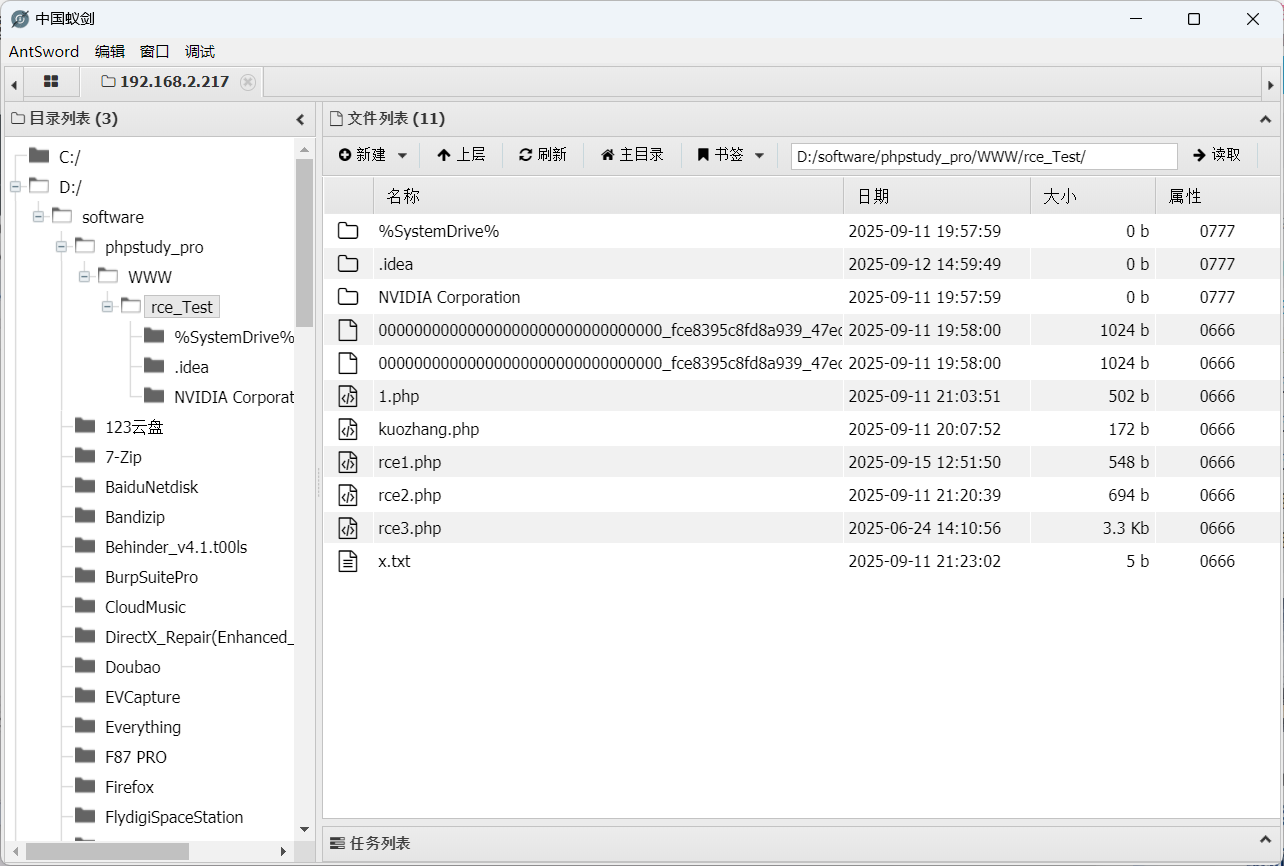 在访问这个11.php文件,通过蚁剑连接