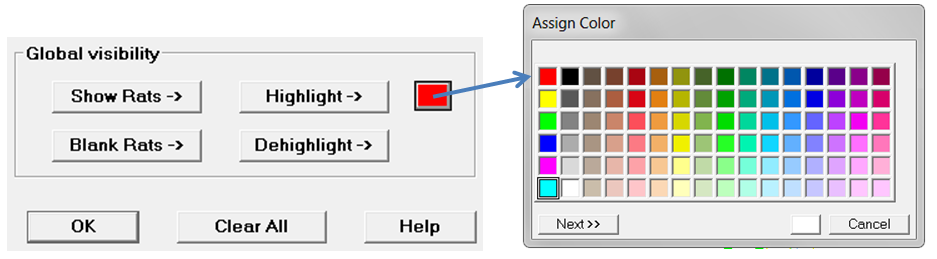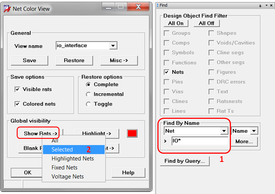 注:Net Color View 是一款交互式应用程序,支持多种网络选择方式 ------ 可通过点选、框选、临时分组功能选择网络,也可通过按名称查找 功能定位目标网络,随后选择选中的网络选项完成视图配置。