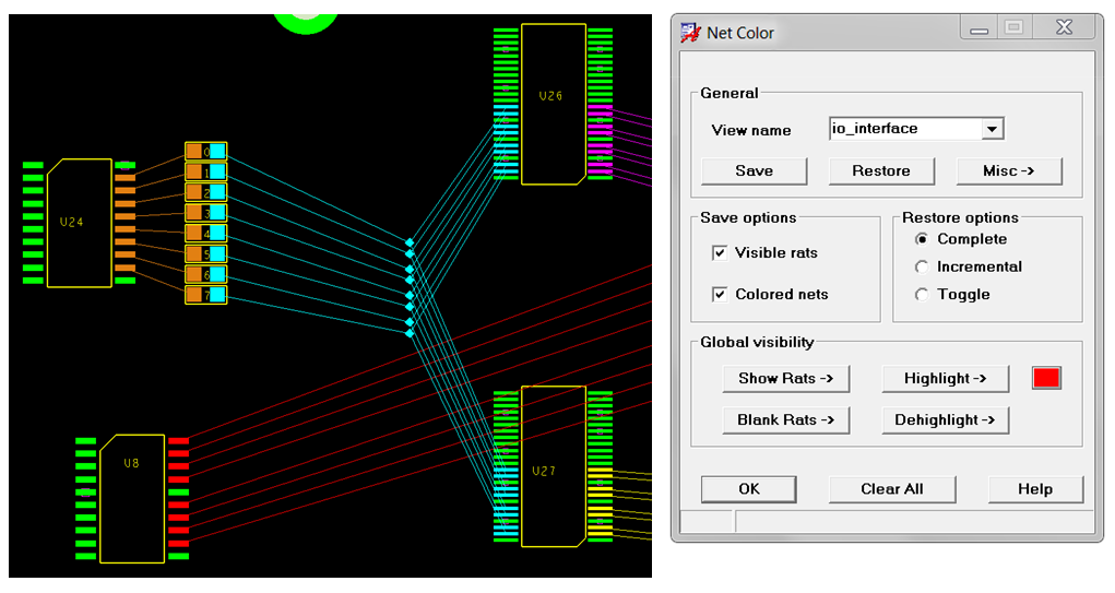 Net Color View(网络颜色视图工具)是一款支持保存和恢复网络颜色与飞线显示状态配置的应用程序,该工具在布局规划和布线可行性分析场景中实用性极强。
