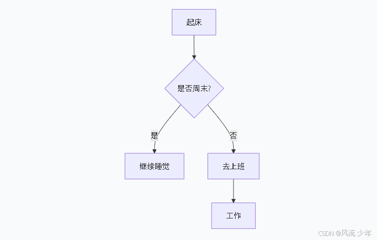 在 Markdown 中使用 Mermaid,需要用 mermaid 代码块,%%表示注释,使用A、B、C、...来给每个节点起标识符ID,节点的形状是由后面的图形表示的,如 { } 表示判断, [ ] 表示方形节点,( )表示圆角方形,(( )) 表示正圆形, | | 表示条件值。