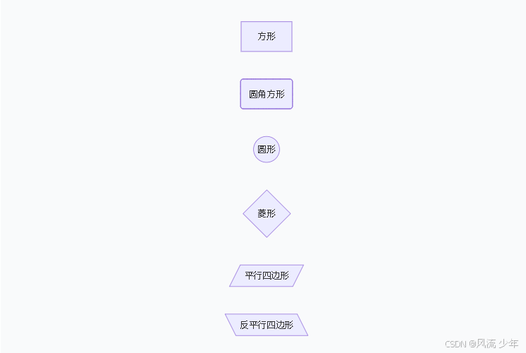 \]:长方形、( ) :圆角长方形、(( )):正圆、{ }:判断、\[/ /\]:平行四边形、\[\\ \]:反平行四边形 ```mermaid graph LR A[方形] B(圆角方形) C((圆形)) D{菱形} E[/平行四边形/] F[\反平行四边形