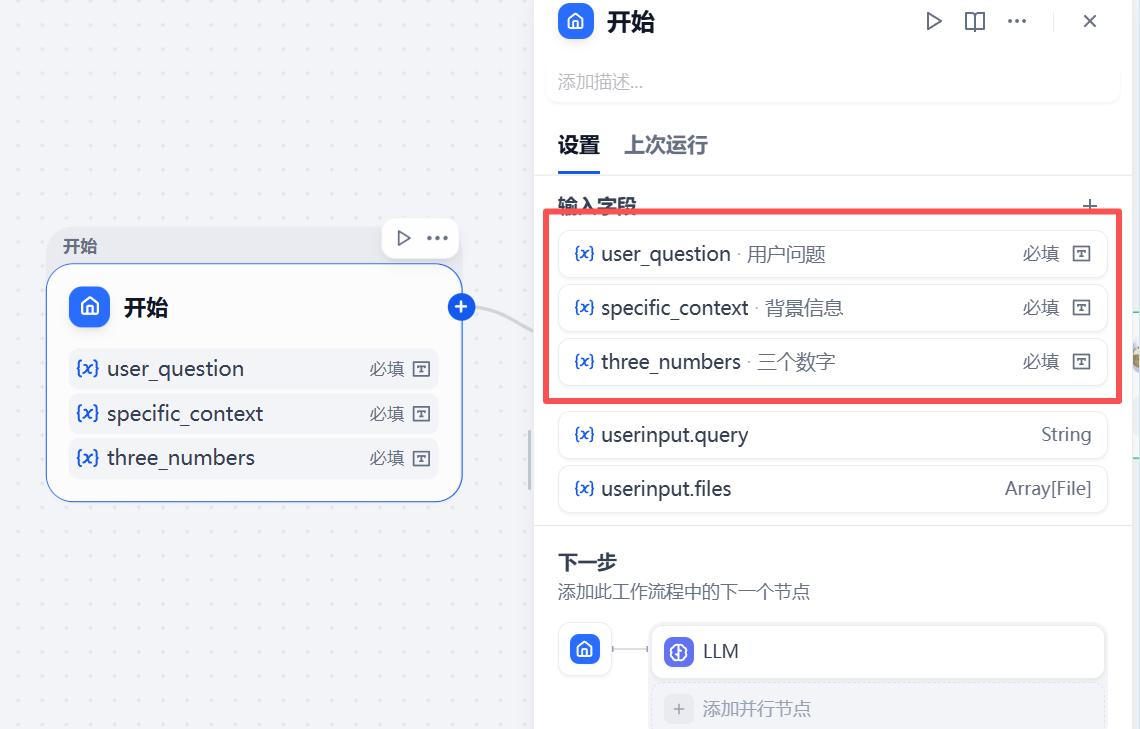 **目的:**通过用户输入的变量,确保工作流能够接收到正确的上下文信息。