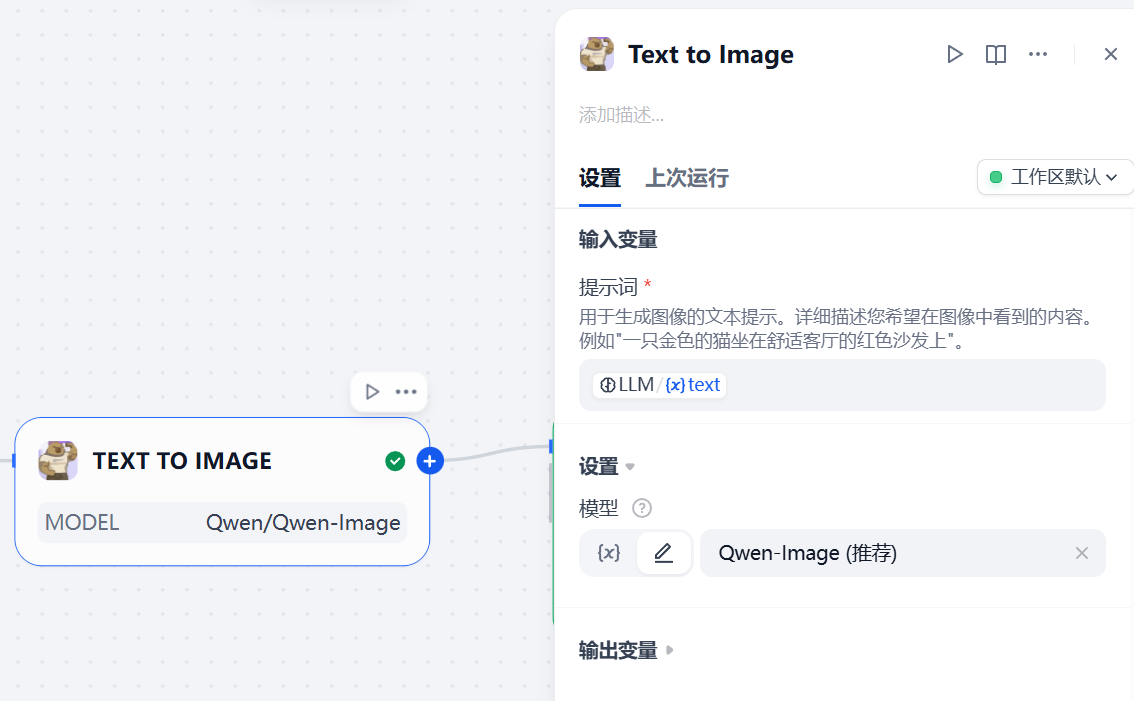 操作步骤: 配置图像生成 API,集成后即可将用户输入的文本转换成相关图像。