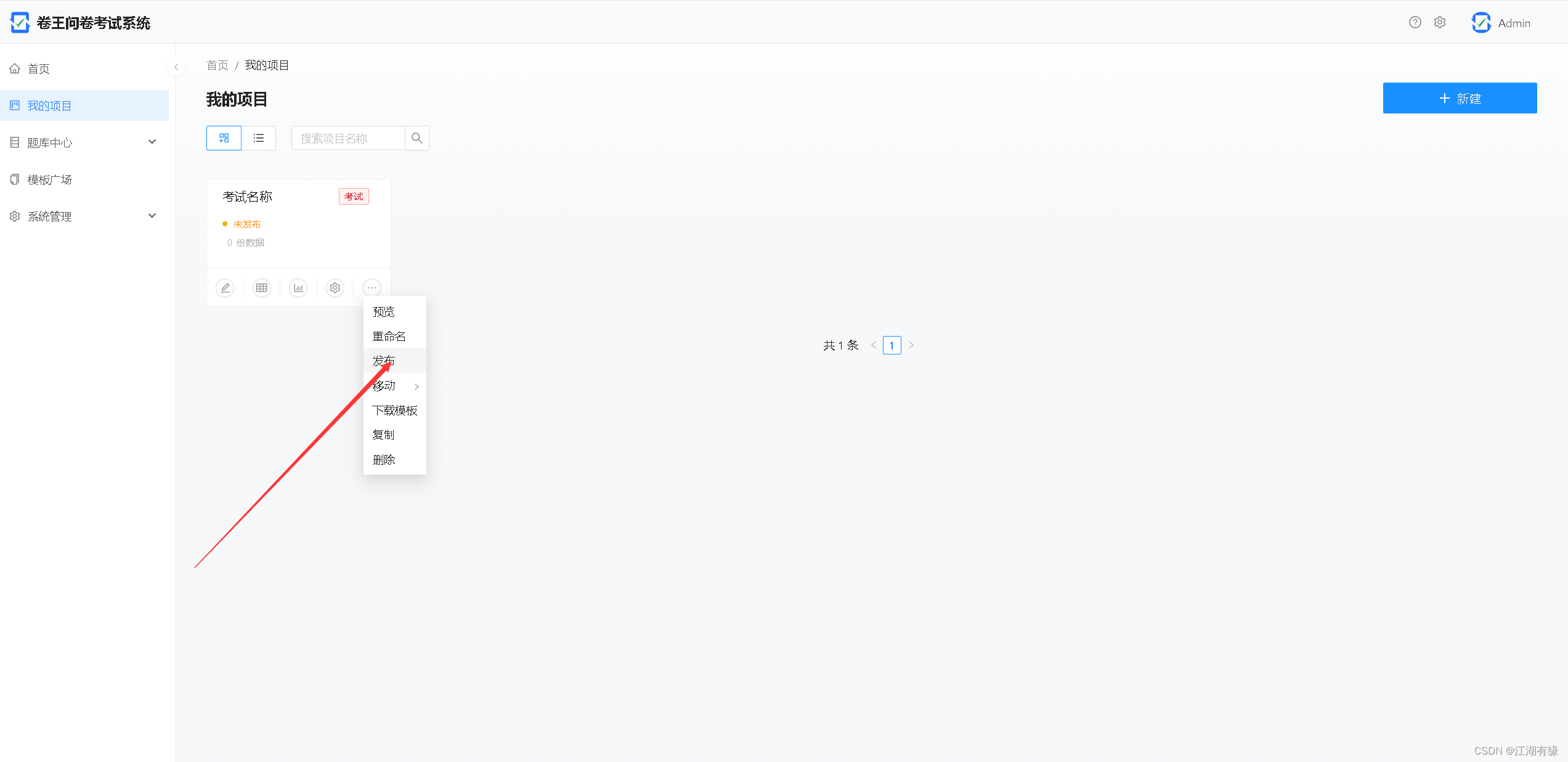 在项目中,打开考试项目,点击报表,可以看到答题相关数据。