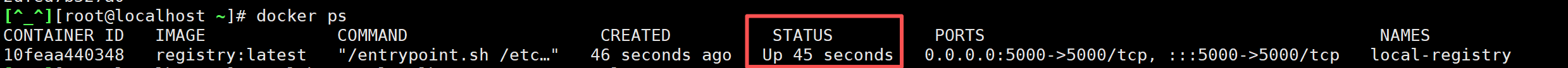 ④验证是否成功上传仓库(curl http://localhost:5000/v2/_catalog),