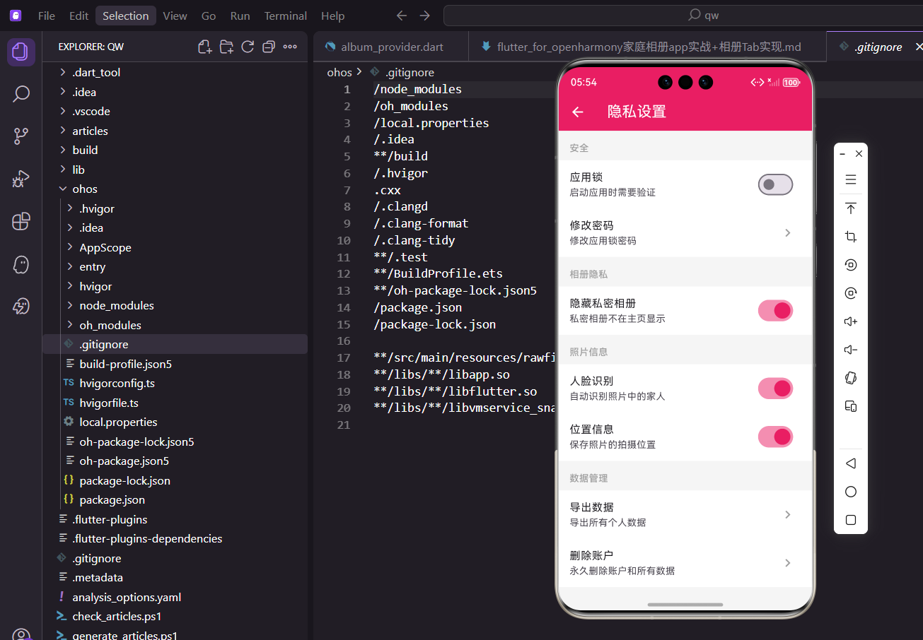 隐私设置是应用中非常重要的一部分,用户可以在这里管理应用锁、私密相册、照片信息和数据导出等功能。一个完善的隐私设置能让用户更放心地使用应用。今天我们来实现这个功能。