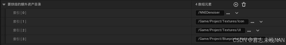 要烘焙的额外资产目录:有些没有引用的文件无法被烘焙,我们可以在列表里添加目录,强制引擎烘焙,比如一些动态加载图片,GAS里的技能等。