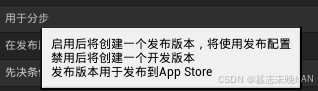 用于分步:选中生成发布版本,禁用则是开发版本