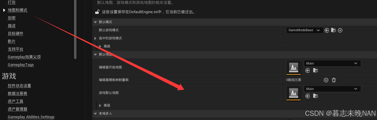 在地图和模式配置项里,我们需要设置打开游戏后的默认关卡